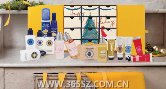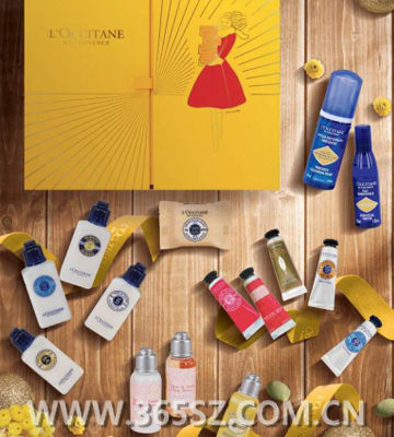 2017年欧舒丹假日集市礼盒以经典充满节日气氛的欧舒丹金黄色为主色调,一个红色大衣的金发少女,手捧礼盒、满脸喜悦地迎面而来,女孩在欧舒丹南法之光商店用心挑选适合家人朋友的礼物,让每一份礼物都闪耀着属于独特的光芒。
