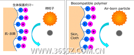 报告中提出:空气中浮游着的微小粒子会对健康产生不利影响,因花粉过敏以及PM2.5等因素导致呼吸系统、循环系统疾病等。为了减少大气污染物质给人类健康带来的这种不利影响,让人类能够更加美丽并且能够享受到高品质的生活,我们开发了防止微小粒子附着在身体和服装上的技术。而日常的身体活动所引发的静电是导致微小粒子附着的一大原因。我们开发了相关的技术可以防止静电发生、通过保护身体的聚合物来减少微小粒子的附着。我们将把这一技术充分利用在相关商品的开发上,防止身体和衣服上所附着的微小粒子被人体吸入而造成的二次摄取,让人们的身体和服装表面能够常保清洁,以轻松的身心状态享受每日的舒适生活。
