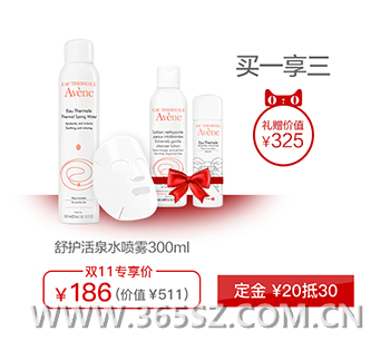 购舒护活泉喷雾300ml加修护舒缓保湿霜50ml,即享活泉修护洁面乳200ml、恒润滋养保湿霜40ml、天然棉湿敷面膜纸, 前3000名下单额外加享小喷。