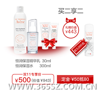 购恒润保湿水300ml加恒润保湿精华乳30ml,即享恒润滋养保湿霜40ml、舒缓保湿眼霜10ml, 前3000名下单额外加享小喷。